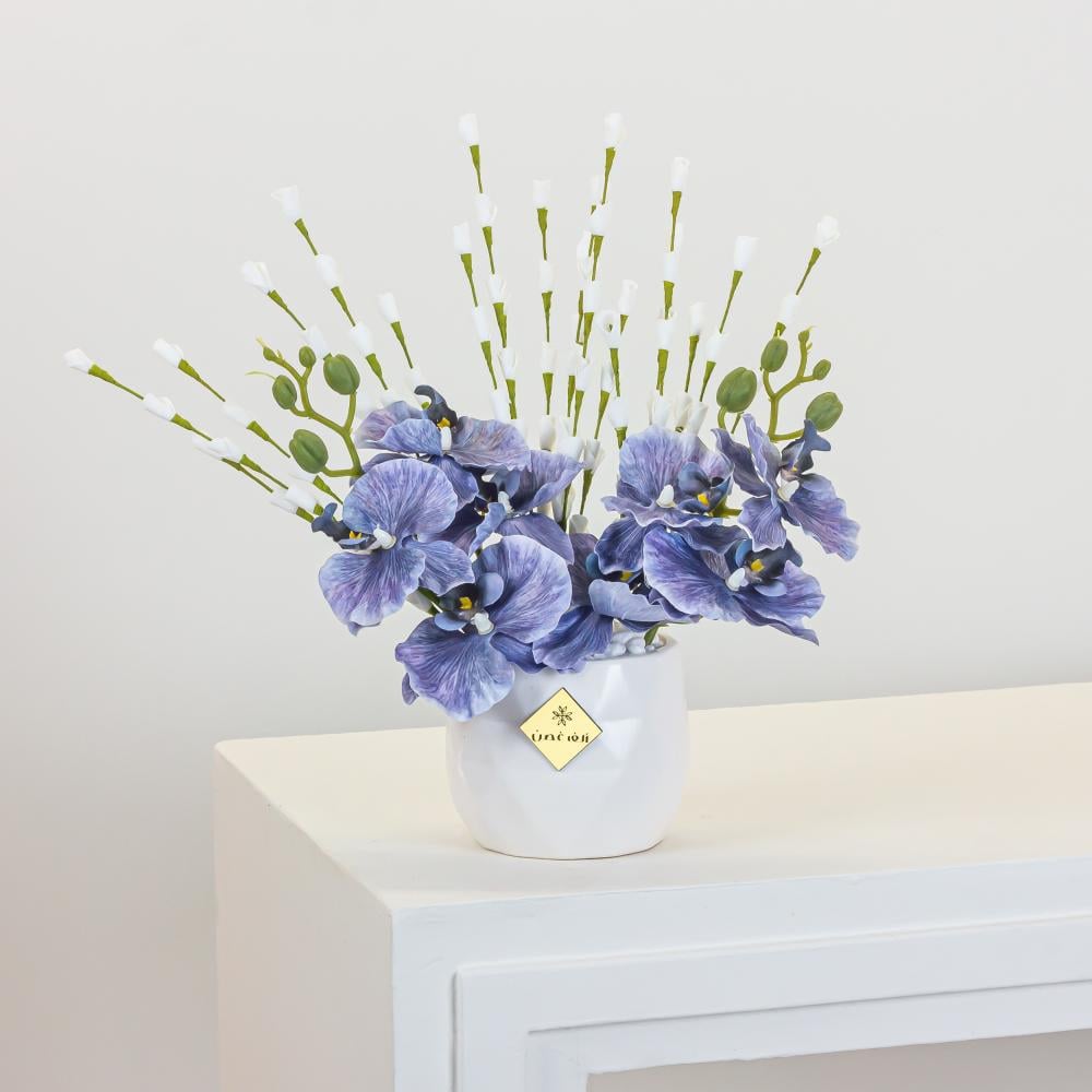 تصميم ملكي بزهور الأوركيد الأرجوانية الانيقة