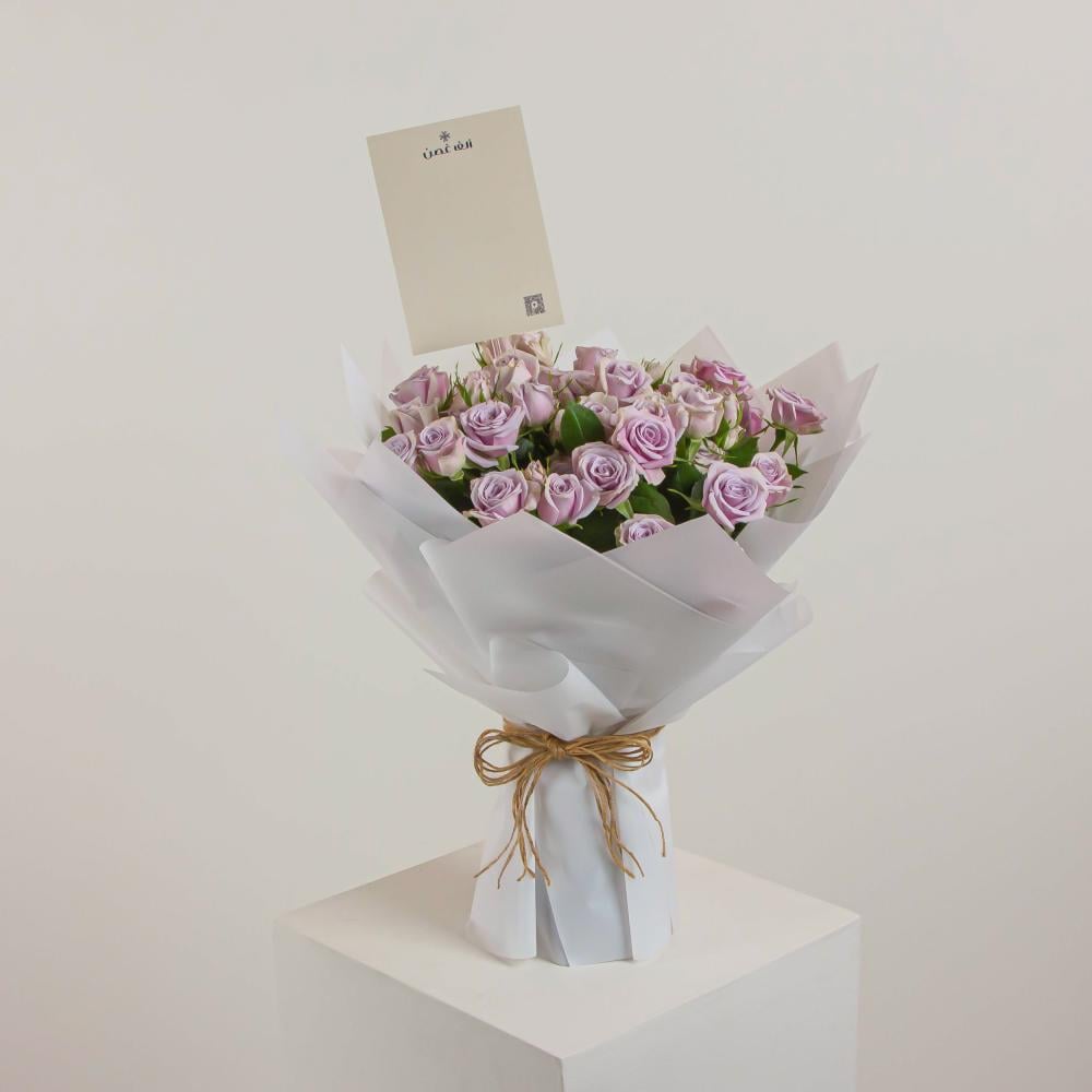 حيث تجمع بين الورود الموف المتألقة وتفاصيل التصميم الأنيق هذه الباقة المتقنة تجسد التميز والرقة، مما يجعلها مثالية لإظهار المودة والتقدير في أي مناسبة