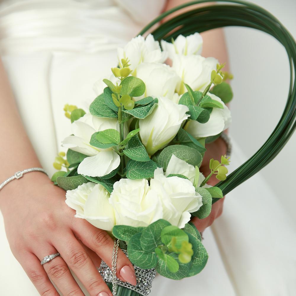 مسكة عروس بتنسيق زهور صناعية، هو الخيار المثالي للعروس التي تبحث عن الجمال والديمومة في يوم زفافها